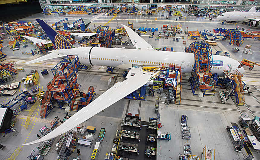 Ensamble y fabricación que concierne a las partes de vehículos aéreos que vuelen dentro y fuera de la atmosfera terrestre. La industria aeroespacial se dedica a la investigación, desarrollo y fabricación de vehículos de vuelo. También se incluyen entre sus preocupaciones los principales subsistemas de vehículos de vuelo, como la propulsión y la aviónica (electrónica de aviación) y los sistemas de soporte clave necesarios para las pruebas, la operación y el mantenimiento de los vehículos de vuelo.